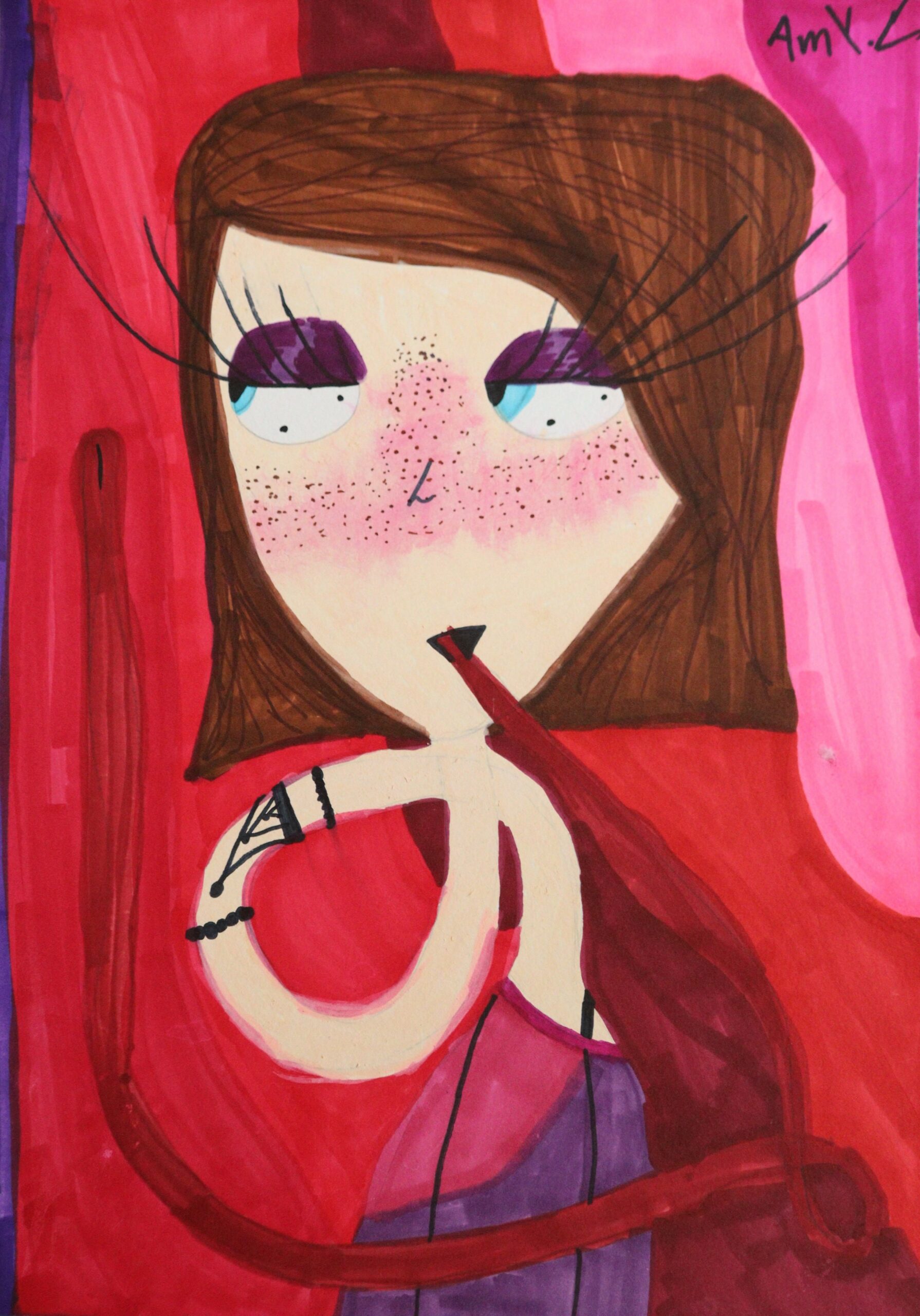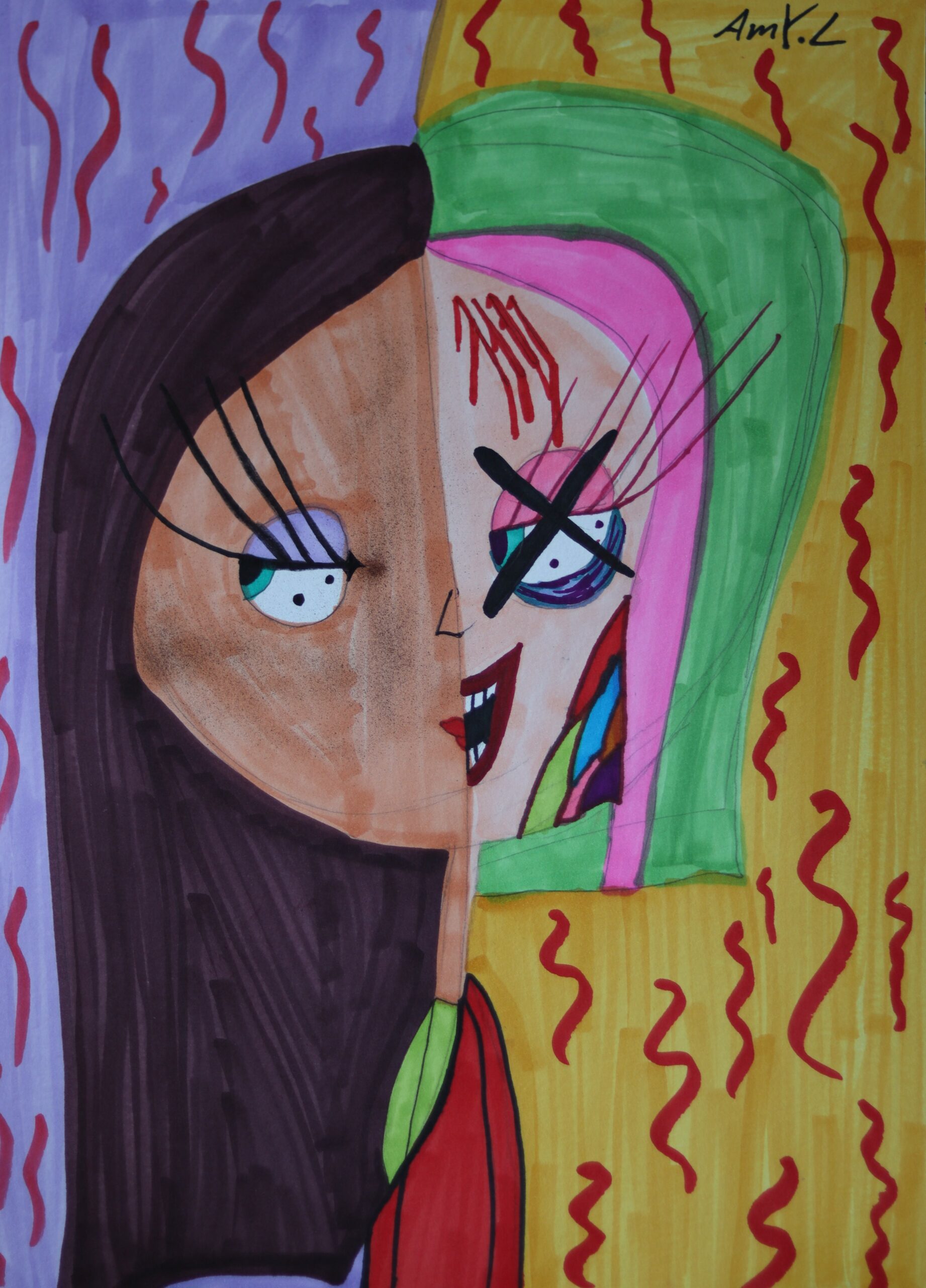 Als ich das Bild malte, dachte ich an die Geschichte von Harley Quinn, sie wurde verrückt wie Joker.